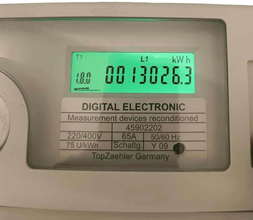 عداد كهرباء إلكتروني ألماني 65 + 85 + 100 أمبير – دقة عالية، تصميم أنيق، وشاشة مضيئة